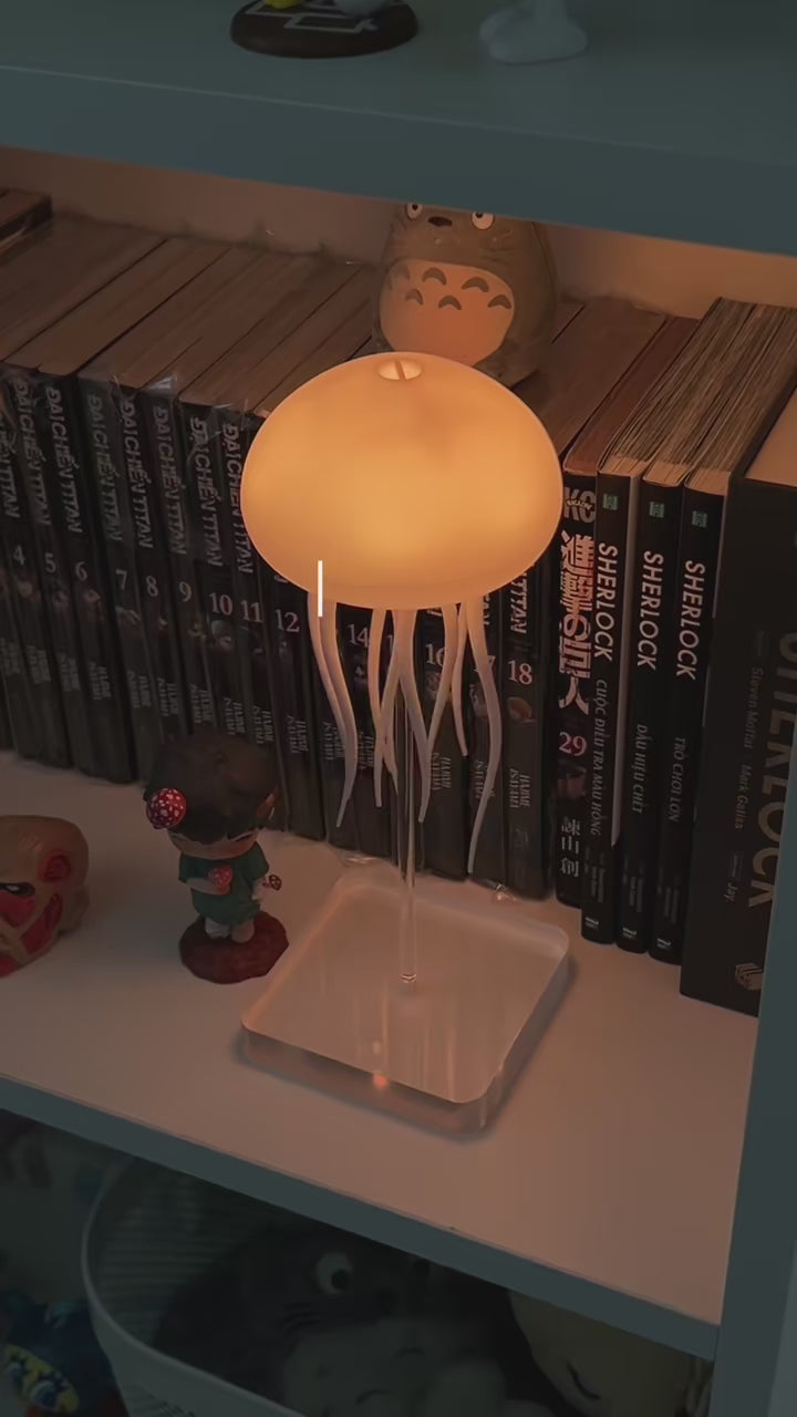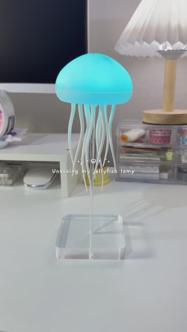 Plug the LED base, slide in the acrylic jellyfish plate, and tap the button to switch colors. No water, no maintenance — just instant ambient glow.